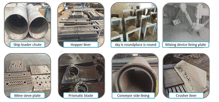 fan blades, coal conveying pipes, hopper linings, conveying troughs, etc. |